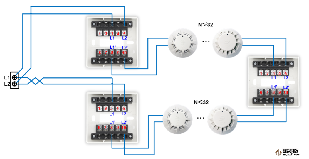 青鳥(niǎo)消防火災(zāi)自動(dòng)報(bào)警系統(tǒng)「常用」產(chǎn)品接線圖