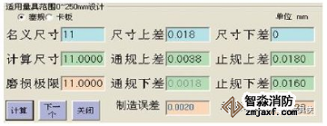 以殼體類零件經(jīng)常使用的工藝銷子孔φ11H7為例,根據(jù)《塞規(guī)、卡板的計(jì)算程序》計(jì)算所得(見(jiàn)圖2),計(jì)算產(chǎn)品被壓縮之后的: