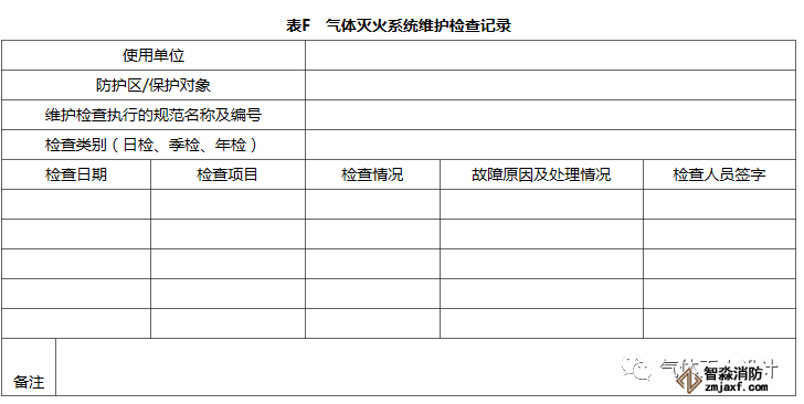 應(yīng)按檢查類別規(guī)定對氣體滅火系統(tǒng)進(jìn)行檢查,并按本規(guī)范表F做好檢查記錄。檢查中發(fā)現(xiàn)的問題應(yīng)及時處理。