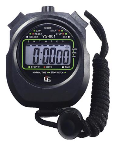 秒表主要有機(jī)械秒表和電子表等2類,電子秒表主要為三按鍵和四按鍵2大類?,F(xiàn)在,使用最為廣泛的是電子秒表,機(jī)械秒表使用已很少見(jiàn)。目前,國(guó)產(chǎn)電子秒表一般是利用石英振蕩器的振蕩頻率作為時(shí)間基準(zhǔn),采用6位液晶數(shù)字顯示時(shí)間,具有顯示直觀、讀取方便、功能多等優(yōu)點(diǎn),如圖1-1所示。