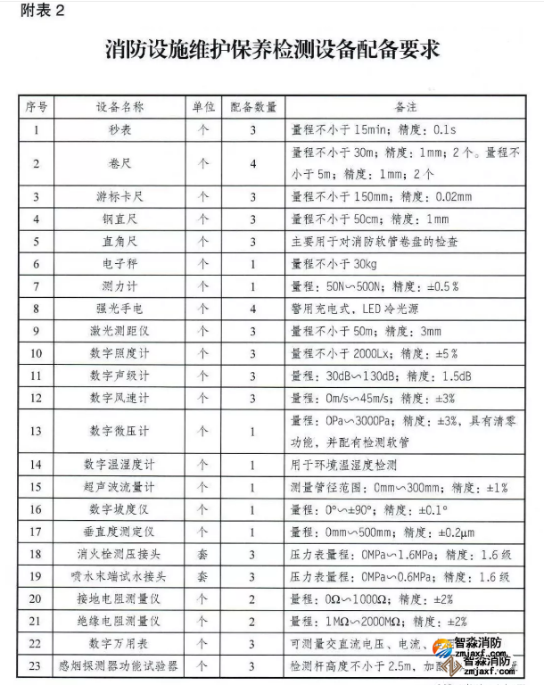 智淼消防設(shè)施維護(hù)保養(yǎng)檢測(cè)設(shè)備配備要求
