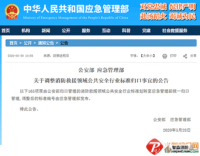 注意!這165項(xiàng)消防公共安全行業(yè)標(biāo)準(zhǔn)劃轉(zhuǎn)至應(yīng)急管理部歸口管理